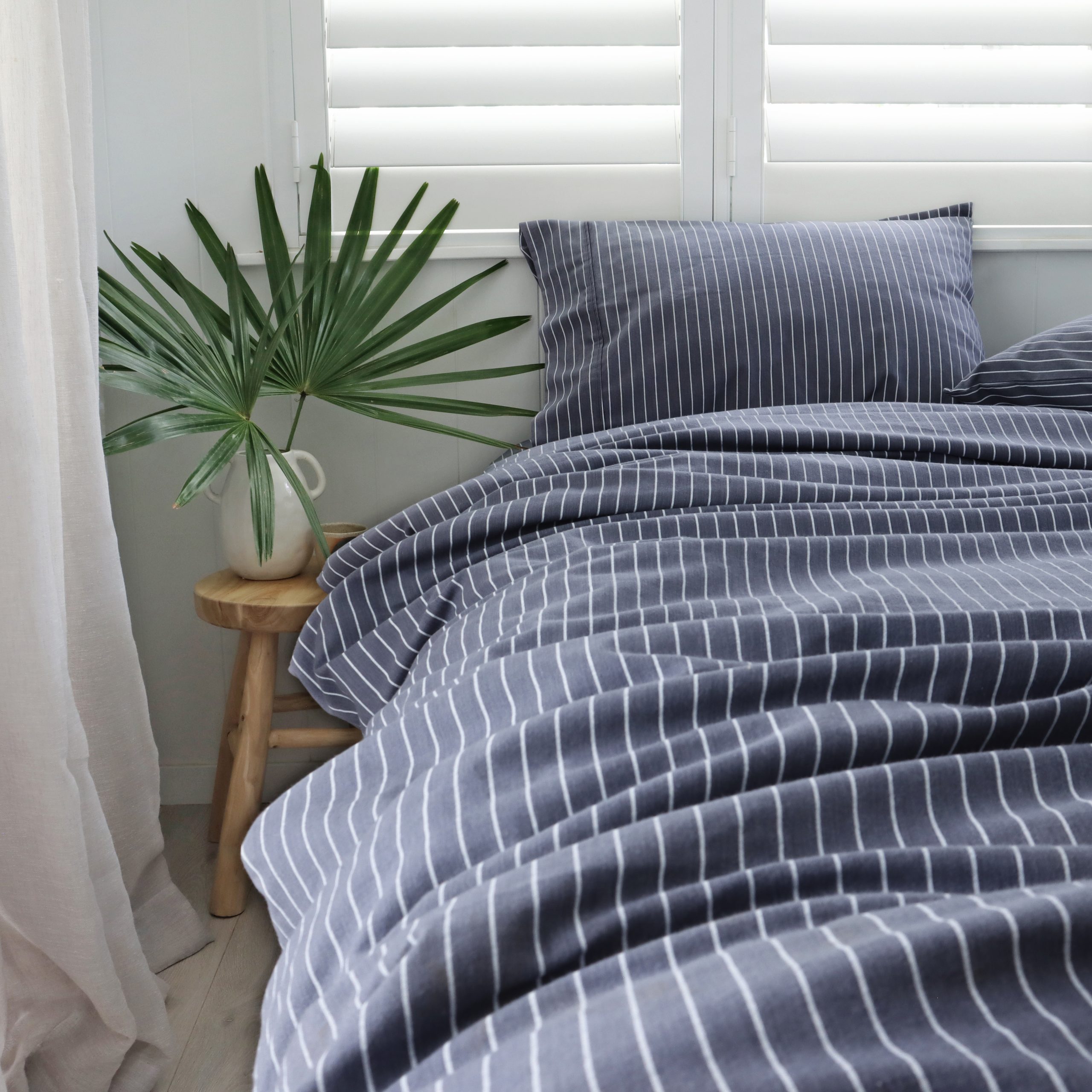 Denim Stripe Flannelette Quilt Cover Set